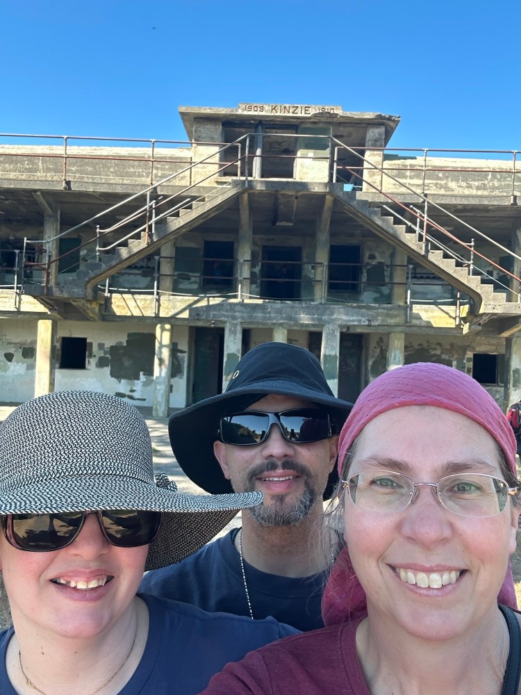 It was fun telling my sister Ellen the next day when we met up with her and CJ at Fort Townsend. After our party saw a museum and the abandoned barracks, the kids wanted to splash in the Strait of Juan de Fuca. I stayed behind to meet up with Ellen and CJ. The barracks were built to send missiles into the strait during WWII in case German submarines came in that way. The old cement structure was super creepy, and I couldn’t get enough of exploring the narrow halls and dark rooms. Esther and Jonah took advantage of the acoustics to sing their hearts out.
