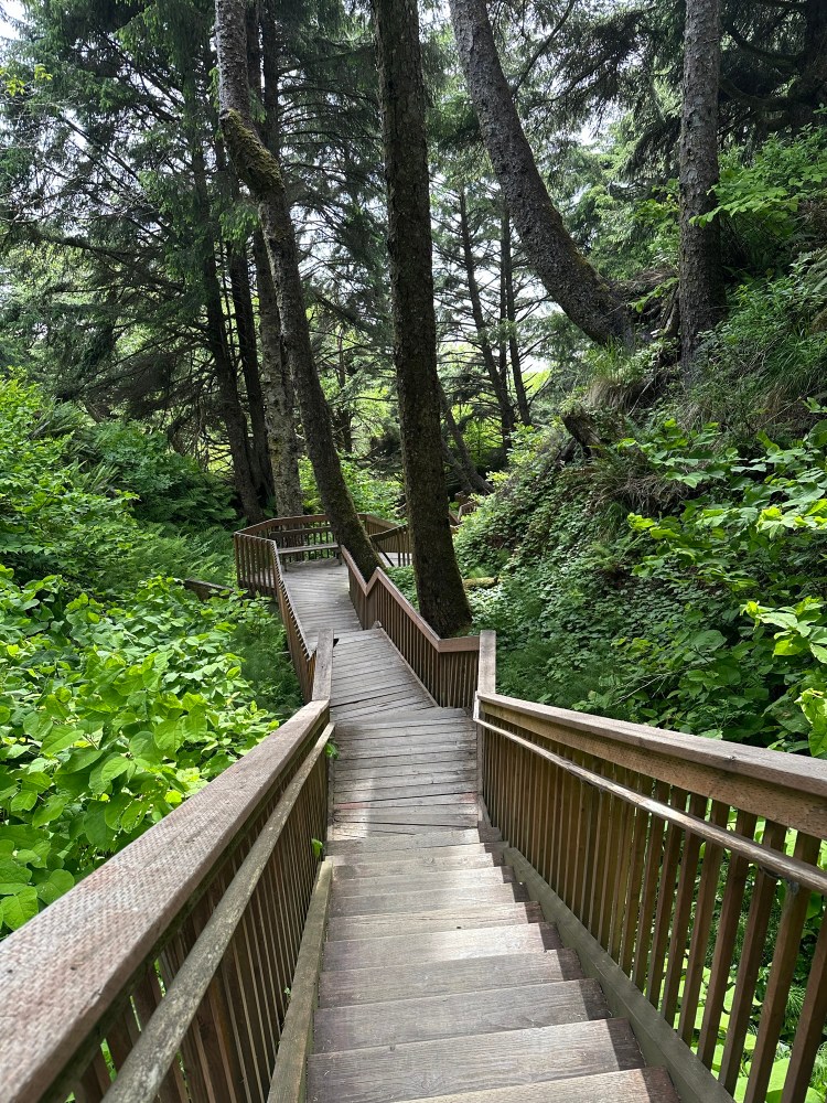 After flying into Seattle on Saturday and spending a few days along the Strait of Juan de Fuca, on Tuesday, we drove to Moclips, Washington, where we stayed at a “resort” on the beach. (Turns out that every place to stay along the Pacific Ocean in that area was called a “resort.”) Our place boasted a two-hundred-step stairway leading down to the sand. Jonah, Xenia, and Justin ran up and down the stairs several times a day. I went once and rested a lot on the many benches that offered respite to the old and weary on the way up. I didn’t mind because I had downloaded the Misborn series on my phone and was always looking for a chance to sit and read.