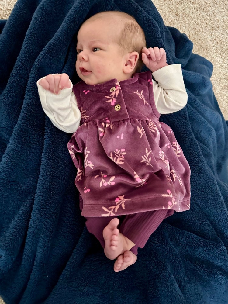 Misha woke up and greeted his new sister with, “Baby? Baby?”