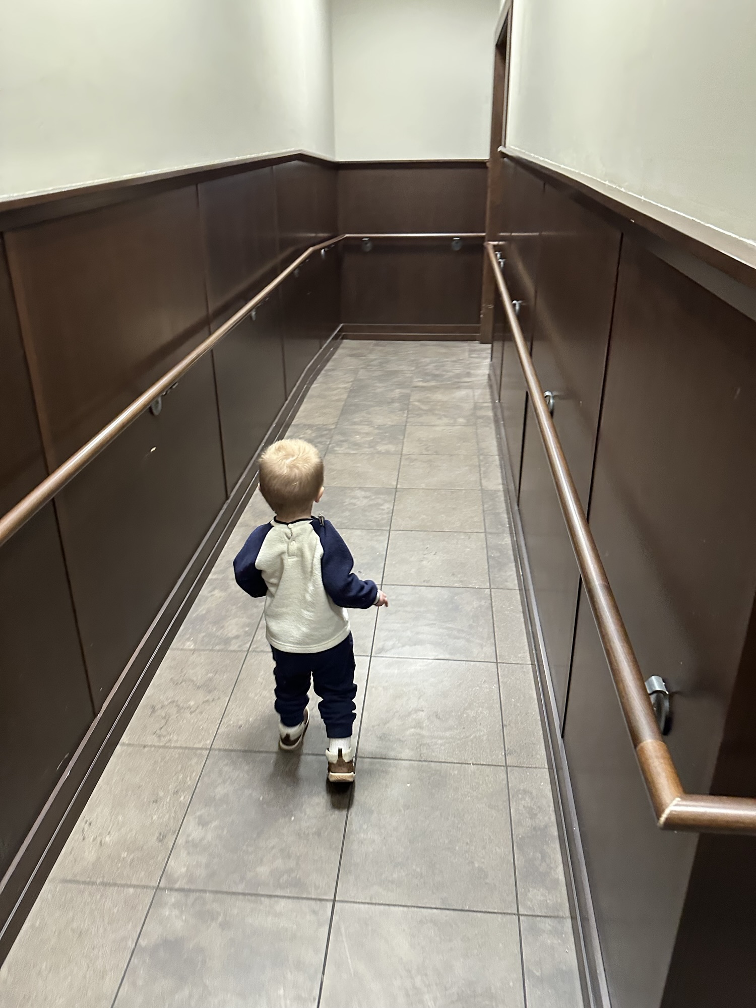 After a long midday nap, I often took Misha out to a place where he could run. Our first day out, once the snowy Ohio roads were melted enough not to scare me, I took Misha to a Barnes & Noble. I was longing for a place that looked familiar and wanted to buy Misha some books that I enjoyed reading to my kids, like Hop Toad, Go Dogs Go, and Hand Hand Fingers Thumb. It was a huge store, so I spent a good two hours playing follow the leader. Misha found the three steps going up to the in-store Starbucks and went up and down about five thousand times. What a special way to get those elevated steps in. My phone congratulated me later. The most exciting place in the store was the handicap ramp up to said Starbucks. We ran down the ramp with abandon. Misha always beat me. He would race around the corner, and when I came around, he would pose like he was heading out into the store and then laugh and turn around and run past me up the ramp again. About ten minutes in, I wished that I had started counting. When I got tired, I boosted my confidence with thoughts like the following: