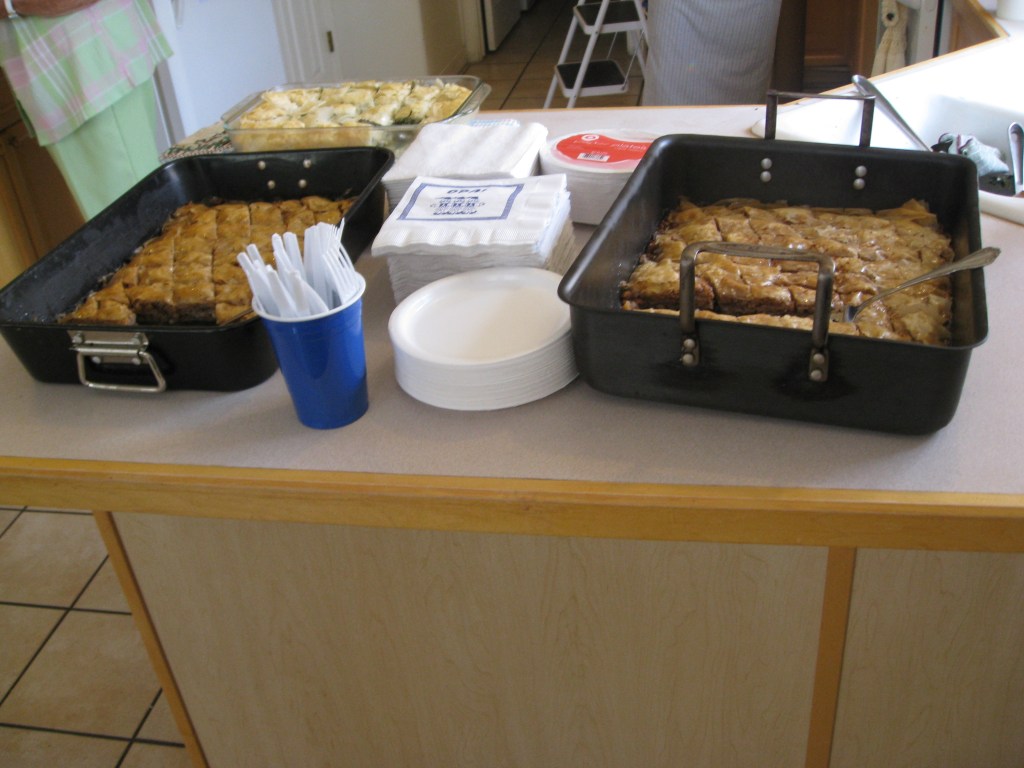 Sprinkle ½ cup of walnut mixture. Add Phyllo. Alternate layers. Butter Phyllo Walnuts Phyllo until walnut mixture is gone. Finish with 5 sheets of Phyllo with butter between them. Top with more butter.